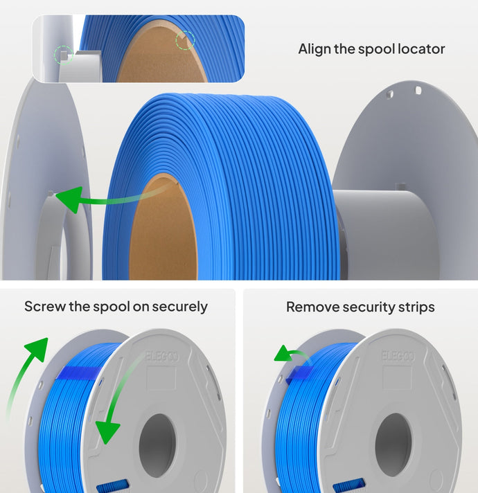 • Compatibilité Supérieure : Le PLA de base Elegoo fonctionne parfaitement avec nos bobines réutilisables, d'autres grandes marques ou même vos propres bobines imprimées sur mesure, garantissant une compatibilité transparente avec la plupart des imprimantes 3D FDM disponibles sur le marché.
