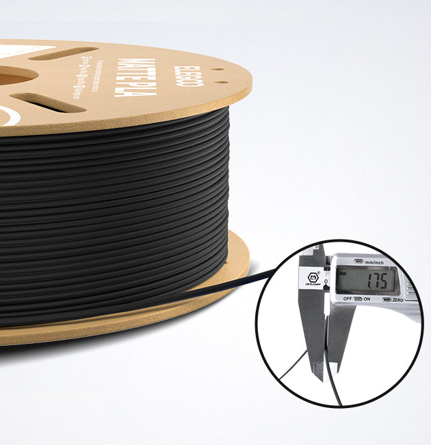 Notre PLA mat offre une précision dimensionnelle impressionnante de +/- 0,02 mm et une tolérance stricte de 1,75 mm de diamètre, garantissant la cohérence et la précision de chaque impression.