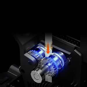 L'extrudeur direct à double engrenage possède un ratio de réduction de 5,2:1 pour une extrusion de filament fiable et fluide, pesant seulement 290g. Le tuyau de gorge en alliage de titane permet une dissipation thermique rapide et réduit l'obstruction de la buse. L'élément chauffant en céramique de 60W et le bloc chauffant en laiton assurent un chauffage efficace et uniforme pour une fonte rapide du filament, même lors d'impressions à grande vitesse.