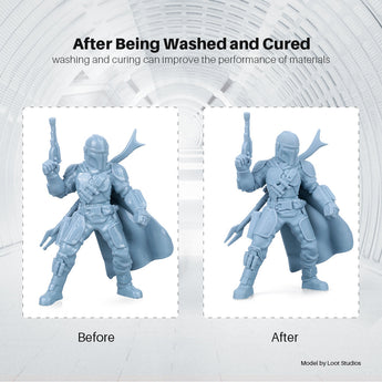 Remarques spéciales : La fonction de lavage n'est pas tout à fait adaptée aux modèles 3D imprimés avec de la résine lavable à l'eau, qui est préférable d'être lavée à l'eau courante.