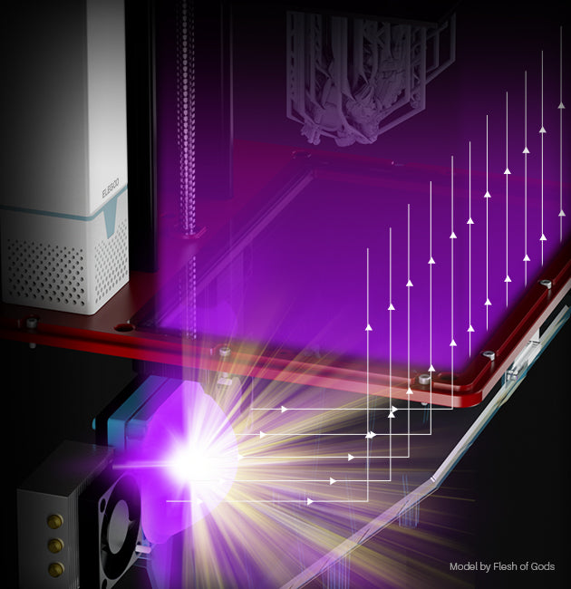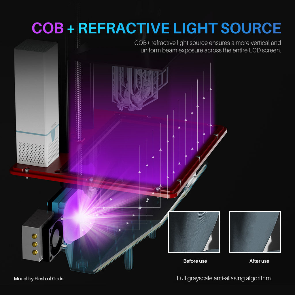 The COB+ refractive light source ensures that the exposure of the 405nm wavelength beam across the LCD screen is more even and vertical with consistent accuracy.