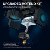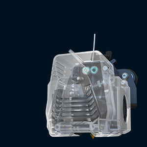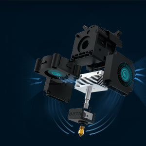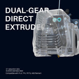 The double-gear direct extruder features a motor with three times the extrusion torque and enhanced gearing force, working with a titanium alloy throat pipe for easier filament feeding and more stable and precise printing.