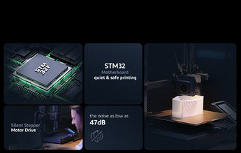 The entire machine adopts an STM 32-bit motherboard with silent drivers and a more efficient nozzle heat dissipation structure, reducing the noise to below 50 dB, similar to a person's whisper. Its wear-resistant POM V-slot wheels move quietly, smoothly, and accurately.