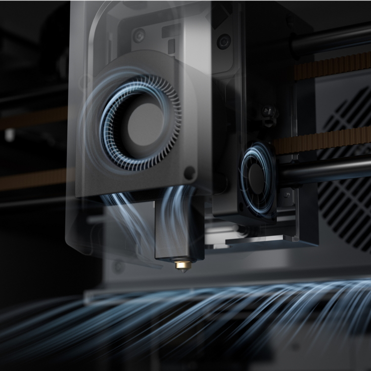 Obtenez une qualité d'impression exceptionnelle grâce au trio de ventilateurs de refroidissement avancés de la Centauri Carbon. Du ventilateur haute vitesse 5020 pour un refroidissement optimal, au ventilateur dédié pour la tête d'impression assurant un flux constant de filament, et aux ventilateurs auxiliaires pour un refroidissement amélioré, chaque élément est conçu pour un refroidissement efficace et des résultats d'impression supérieurs.