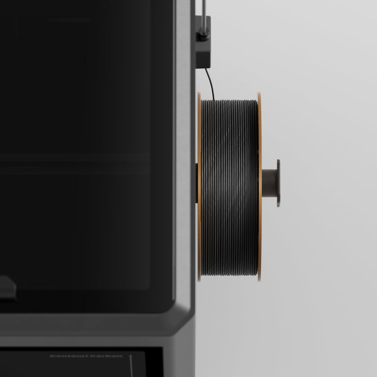 Situé du côté droit de la machine, le porte-bobine offre une commodité pour le remplacement et la surveillance de l'approvisionnement en filament.