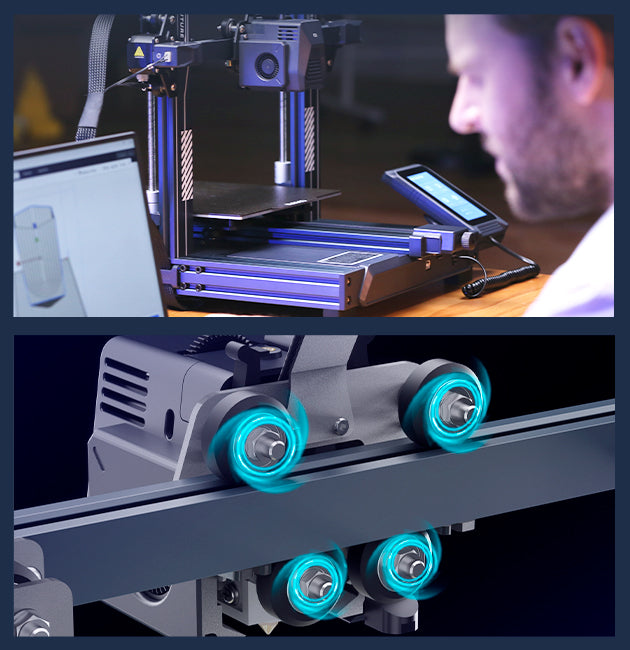 Z-axis dual lead screw + Z-axis dual-motor design with better synchronization increases the accuracy and stability of printing.