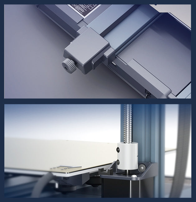 There are hand-leveling knobs under the hotbed to fine-tune the build platform for a better compensation effect and final print quality.