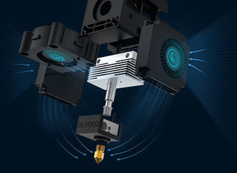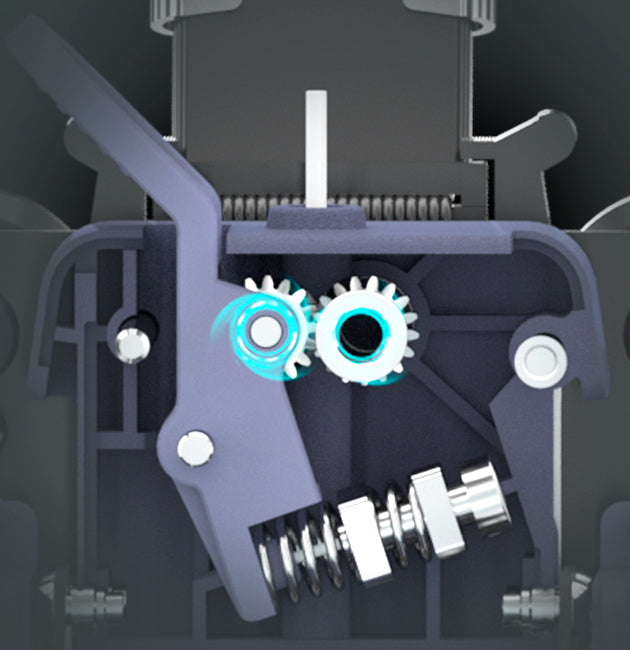 The double-gear direct extruder features a motor with three times the extrusion torque and enhanced gearing force, working with a titanium alloy throat pipe for easier filament feeding and more stable and precise printing.