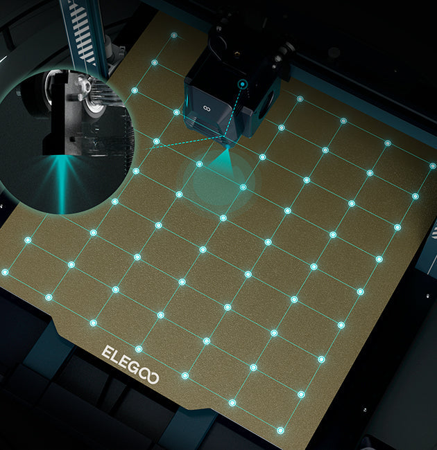 The 63-point leveling system adopts a non-contact sensor to automatically calibrate and compensate for any inconsistencies or unevenness. No more tedious leveling operations of the printing platform. Simply click the button on the screen to start the automatic leveling job!