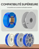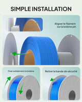 • Installation Facile : Conçu pour une installation sans effort, ce filament de recharge se fixe solidement sur la bobine réutilisable avec une simple rotation sans outil, vous permettant de reprendre l'impression en un rien de temps.