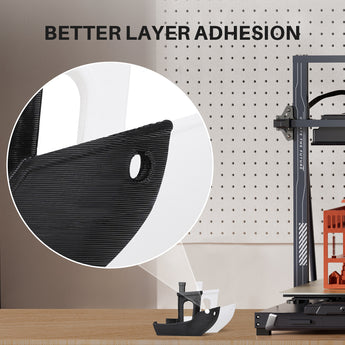 Le filament PLA PRO d'ELEGOO surpasse le PLA en termes de résistance à la température. Il peut supporter des températures plus élevées sans se déformer ni perdre ses propriétés mécaniques, élargissant ainsi les possibilités d'applications, même à des vitesses d'impression rapides.