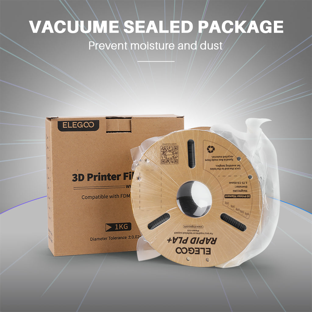 Tous les filaments RAPID PLA+ sont scellés sous vide avec un dessicant pour prévenir l'humidité et la poussière, compatibles avec la plupart des imprimantes 3D FDM 1,75 mm, vous garantissant ainsi de les utiliser en toute confiance avec vos imprimantes existantes.