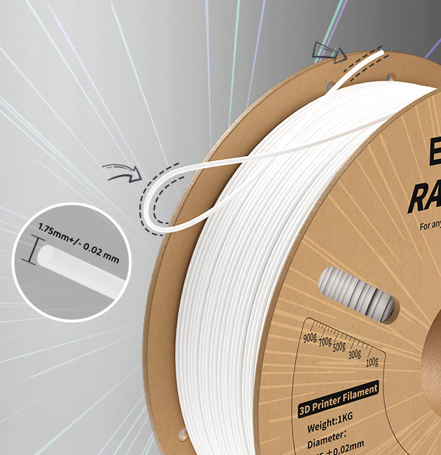 Le filament RAPID PLA+ offre une précision dimensionnelle de +/- 0,02 mm et une tolérance stricte de 1,75 mm de diamètre, garantissant un écoulement constant et fluide du filament et réduisant le risque de bouchage de la buse.