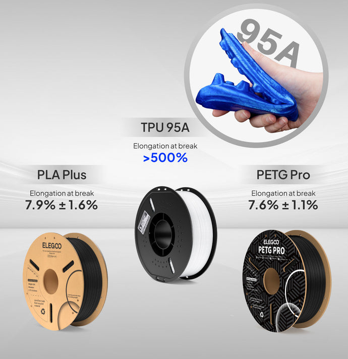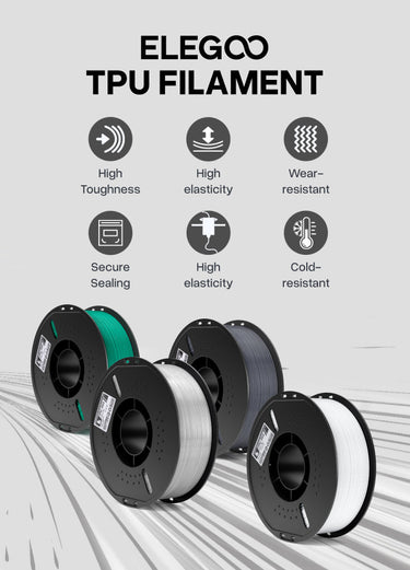 Le filament Elegoo TPU 95A offre un niveau exceptionnel de résilience et de flexibilité. La plupart de ses impressions peuvent être étendues jusqu'à cinq fois leur taille d'origine sans se casser, ce qui le rend idéal pour la fabrication de pièces nécessitant une élasticité exceptionnelle et la capacité de résister à la déformation.