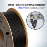 Le filament est fabriqué selon des tolérances strictes, avec une précision dimensionnelle de ±0,02 mm, garantissant des impressions d'une grande précision et constance.